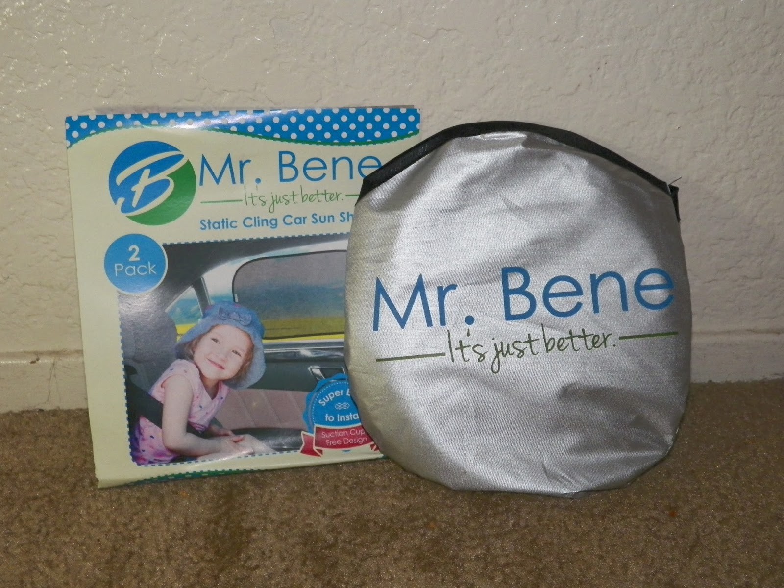 The Mr. Bene Static Cling Sun Shade can also be folded and stored in the pouch included. It reduces sun glare and I like that it blocks most UV rays from the sun. Here is a quick product description from the company: