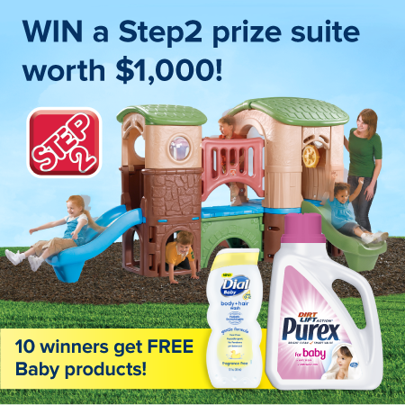 Ten second-place winners will each receive a bottle of Dial Baby Body + Hair Wash and a bottle of Purex Baby laundry detergent.